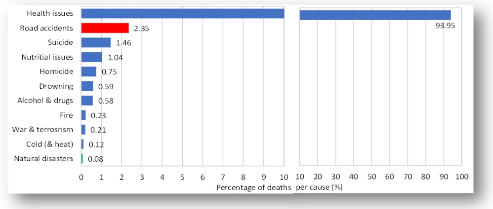 Aggiornamento 21/09/2025: Riporto qui dalla mia opera la Figura 11.15, che mostra la percentuale media di decessi per causa nel decennio 2010, utilizzando i dati di Our World in Data.
